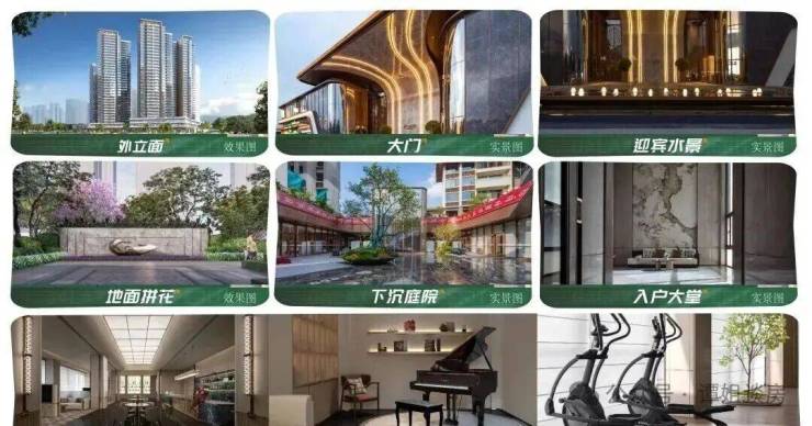 超甲级写字楼同款外立面, 约9.6米高鲲鹏展翅“鲸鱼尾”大门, 造价约50万上海宝格丽同款迎宾水景, 人工费超10万安缦酒店同款地面拼花,约550m²酒店式下沉庭院,约10米高尊崇归家入户大堂,9大主题星邻里会所。