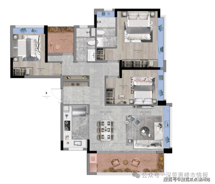 • A+健康居住家:配置景观大阳台、U型大厨房、贴心大玄关、品质系统门窗、中央空调、智能生活,居住更舒心