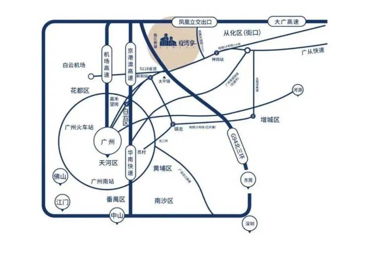 ①广从快速路双向六车道无红绿灯,自驾40分钟达珠江新城;