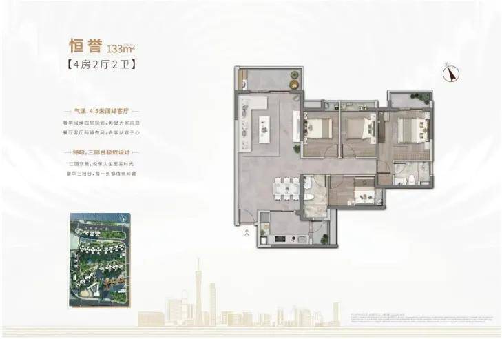 约114㎡全南向多功能江景3+1房、约121㎡的中心区稀缺天幕江景四房等,让更多菁英共享不断升阶的白鹅潭江岸生活价值。