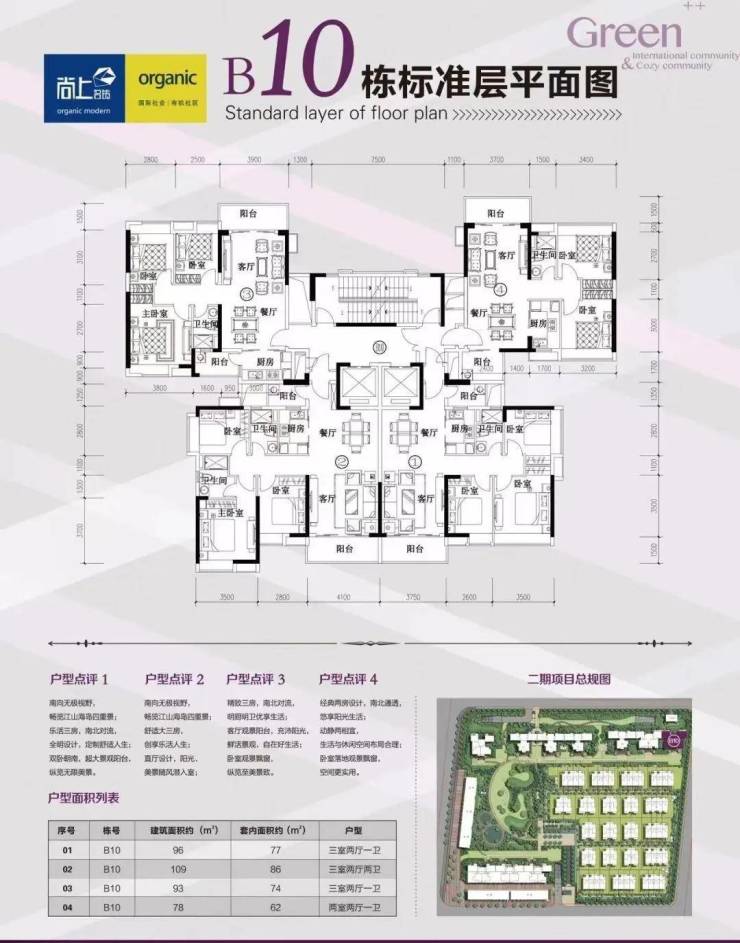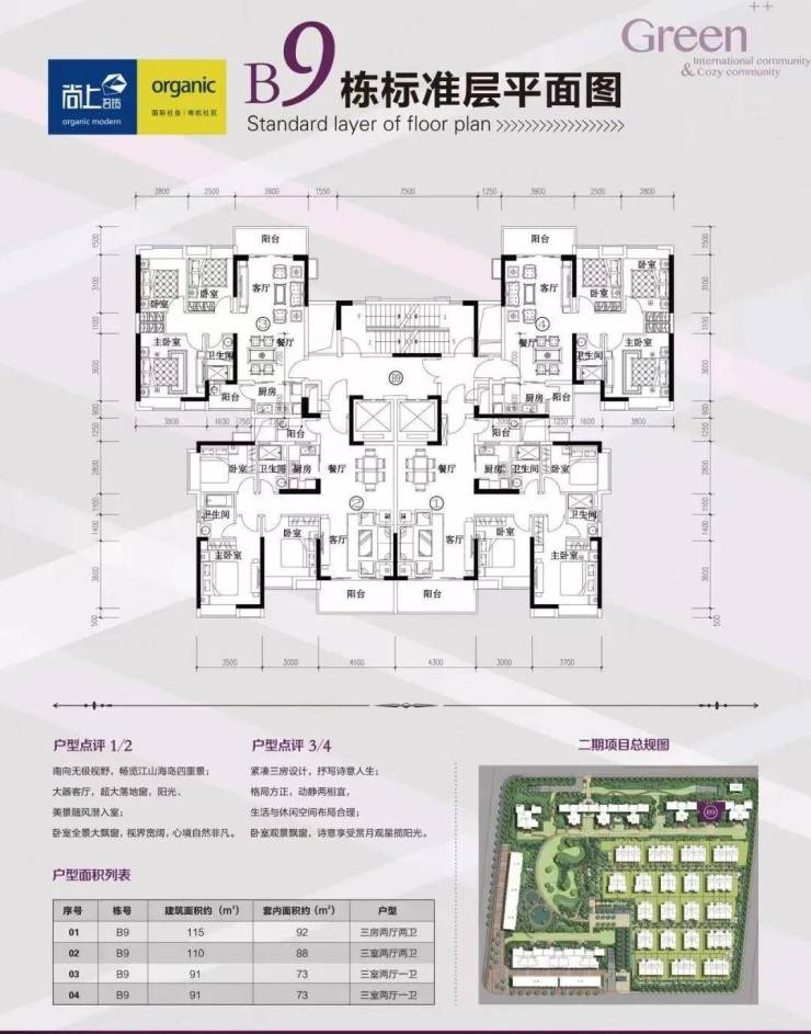 洋房【户型优点】:两梯四户、方正实用、高层、户户朝南