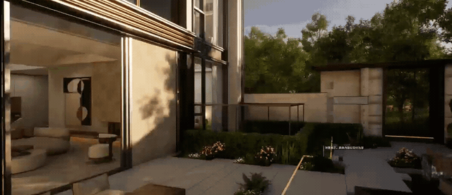 璞樾·墅通过南北独立入户,独立院墙,独立私家电梯,独立归家动线的设计,拥有的是「门庭府邸」的高门大院感。