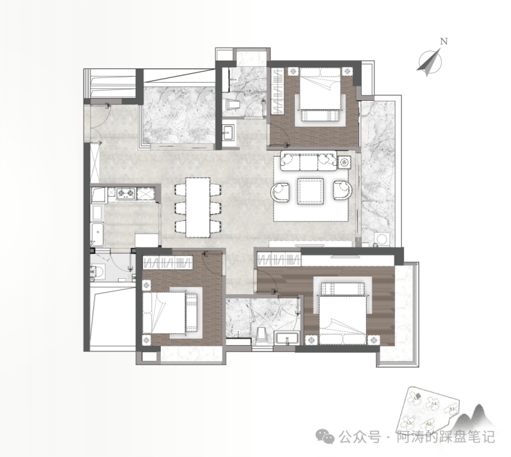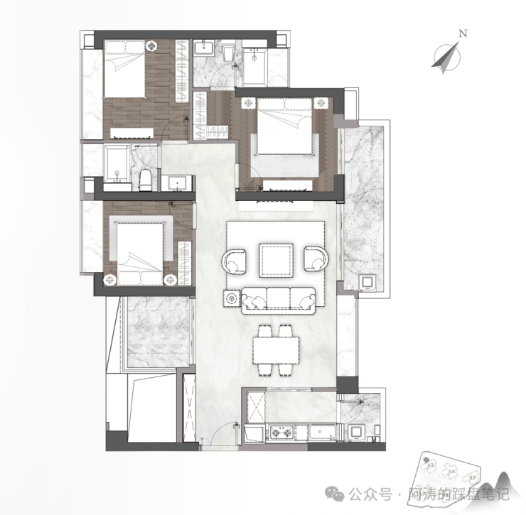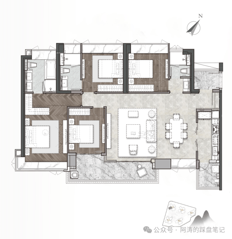 【A5-03】建筑面积约192㎡四房两厅三卫