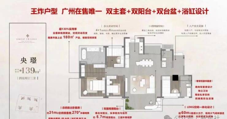 【139m²】南北双阳台对流+揽园林瞰珠江景+双套房设计+置换首选 南向大面宽17.3米,近60㎡LDKG超大客厅设计,南5.7米、北2.7双阳台,约7米270°环幕观景窗,双套卧均 带独立衣帽间,塔尖人群奢享!