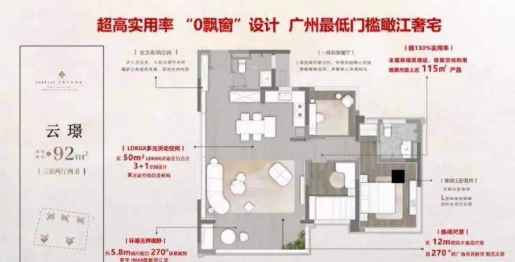 【95㎡】11.8米南向面宽+5.8米超大阳台对流+极致珠江景观+灵动改造三四房随意切换+首置首选 约5.8米超大阳台,5.8米超大客厅开间,近39㎡LDK谁,灵动布局,新潮实用,约5.4米270°环幕观景窗!