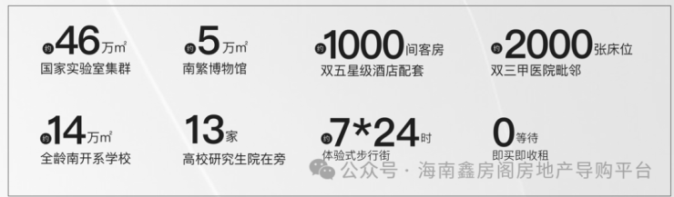 高商业需求:三公里范围内,双五星酒店、近50万㎡国家实验室集群、双子塔办公总部、综合型三甲医院、海南大学研究院等项目环绕,高端消费人群密集,消费需求旺盛。