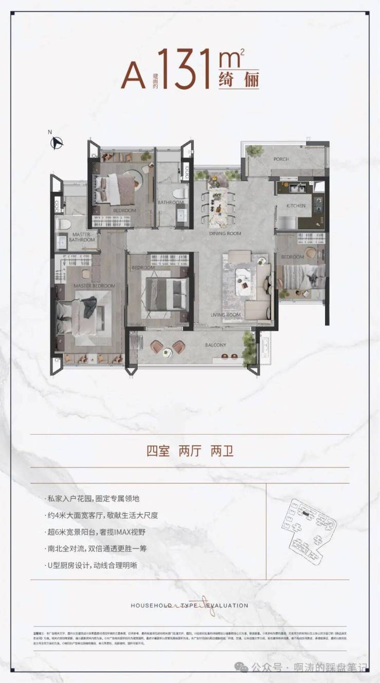项目坚守改善定位,户型覆盖多元面积段,主打建面约143-500㎡全周期改善户型,涵盖143-165-185-195-245-260-330-488㎡多个户型,同时推出约225㎡奢绰四房等核心产品,适配单身精英、多孩家庭、高阶圈层等多元改善需求[3][4]。项目容积率仅3.4,总楼高≤80米,高使用率,打造纯粹南向大平层圈层,私密性与舒适度拉满[4]。