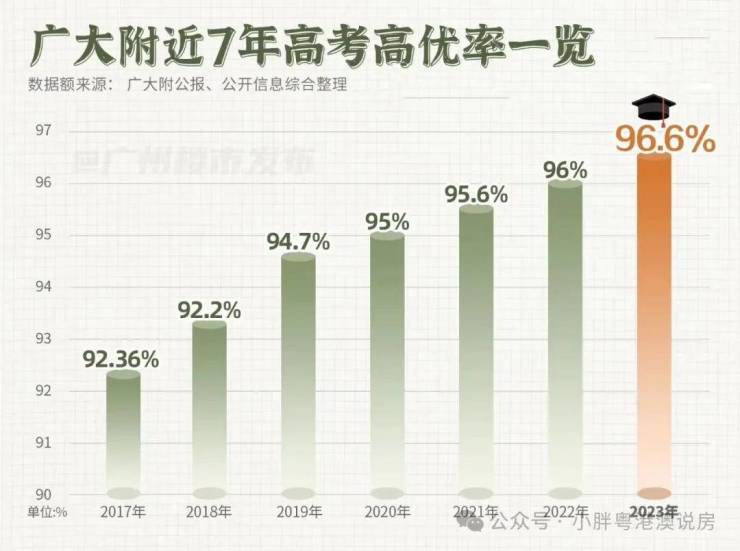 在今年的中考录取分数线,广大附中以736分力压省实、华附,登顶全市第一,并且,广大附中高考高分投档上线率也高达96.6%!