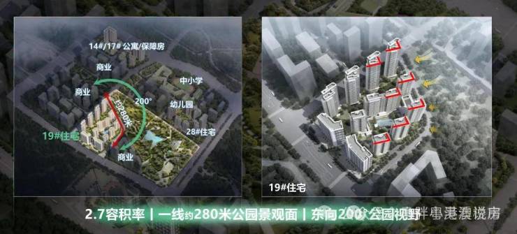 项目还做出了南偏东20°的科学扭转,使得户户望公园,一线公园景观面达约280米。