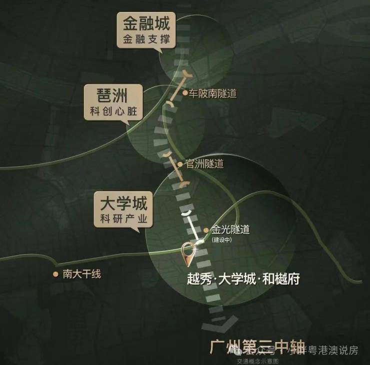 金光东隧道已经通车,5min直通大学城一期。同时也 让一二期资源得以链接、整合,真正融合成为一个整体