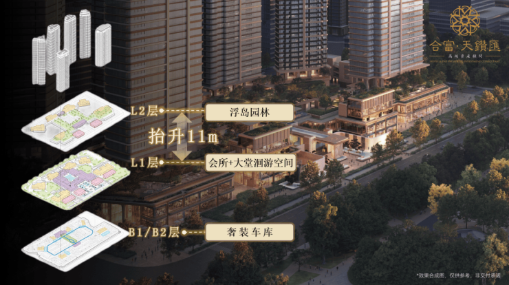 对顶豪客户来说,房子早已不是居住空间这么简单,而是他们享受生活的载体。保利玥玺湾的创新盖板设计将整体建筑抬升了11米,为业主入住后的生活打造了专属的资源生态。