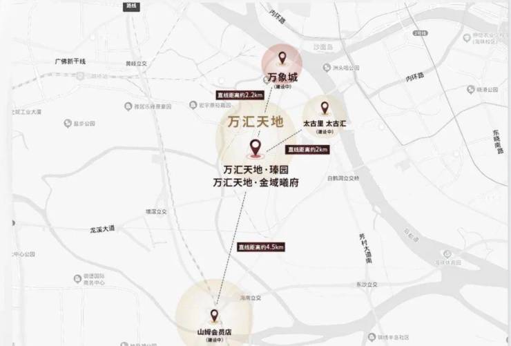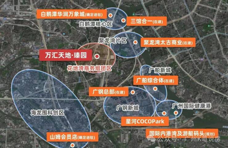 此外花地湾片区基本都是由万科统一开发,汇合白鹅潭-花地湾-聚龙组团的板块张力,白鹅潭核心区、聚龙组团、花地湾组团,于半径约2KM内构建珠江西岸CAZ黄金三极。
