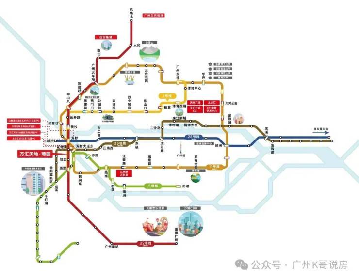 项目附近有花地湾TOD枢纽,属于地铁1号线、25号线花地湾站的交汇换乘点,距离地铁花地湾站约800米左右,步行需12分钟,1个站到达芳村TOD可换乘11、22号线地铁,11号线还是打通广州地铁线网的“换乘之王”,全线32个站点中,有26个为换乘站,16个与既有线路换乘,届时从项目出发去往广州各区都很方便。
