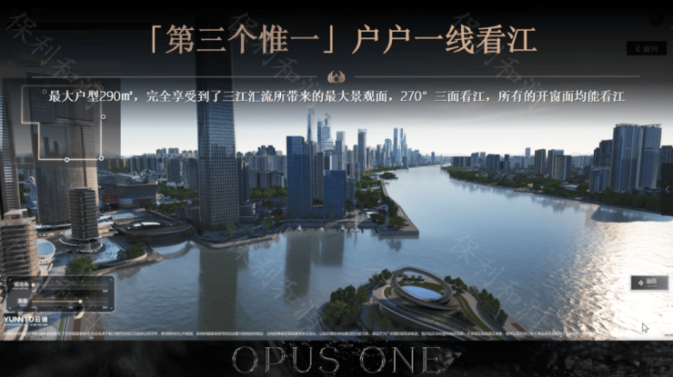 为了实现最大的观江延展面,住宅以龙型布局环抱港湾,能达到IMAX环幕瞰江的视野。