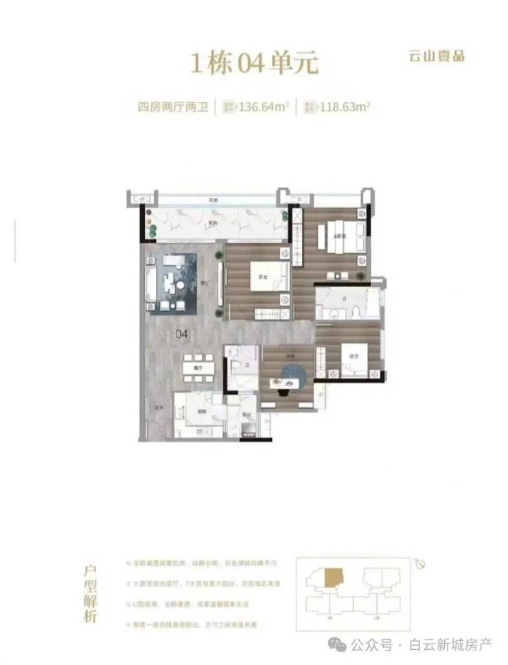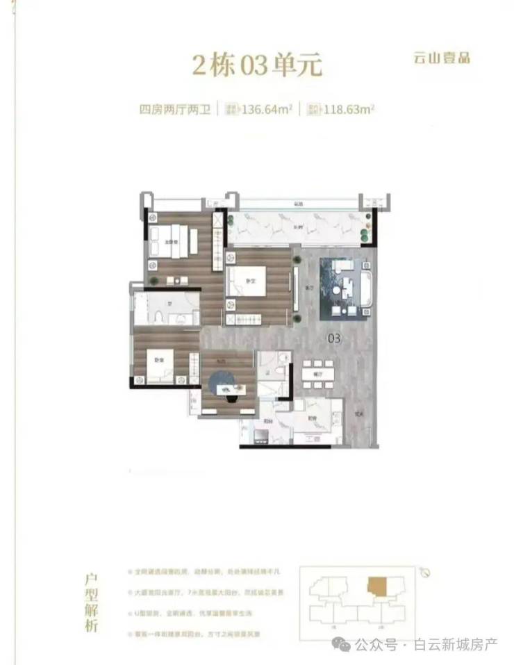 2. 136㎡ 四房二卫户型