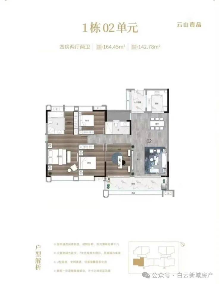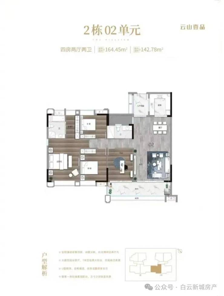 2. 164㎡ 四房二卫户型