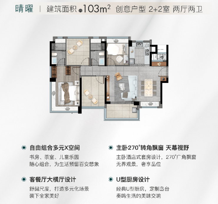 卓越晴翠系定位城市C位人物居住解决方案,为时间高效者实现事业、家庭、社交、自我四合一的本质需求。