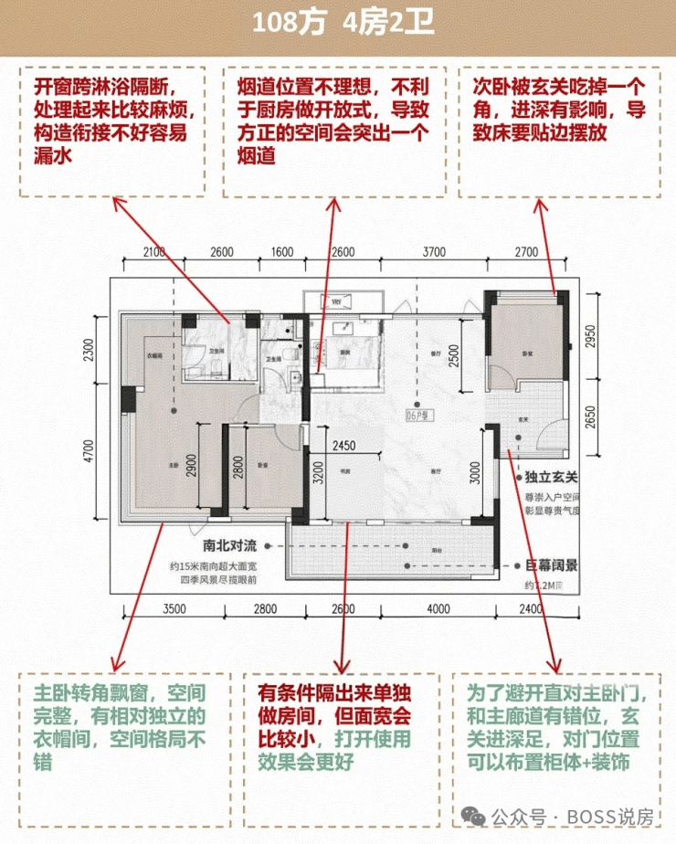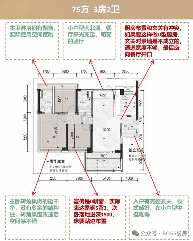 1、户型输出有些瑕疵,图中玄关入厅的位置宽度明显不足,实际难以做到完整的入户对景