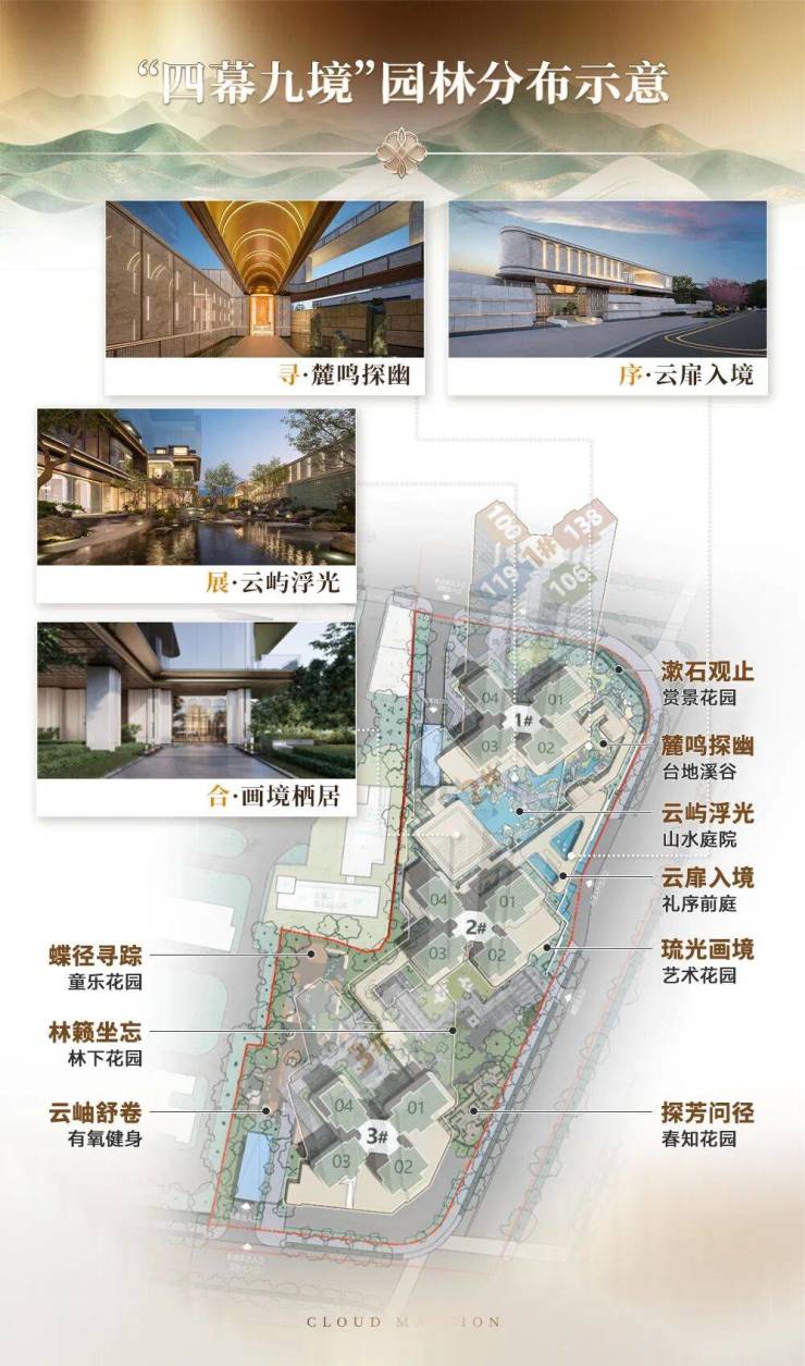 再聚集到项目,园林实景示范区也已经开放,整体设计以“现代型,东方意”为基调,把“破云而出的青山胜景”这个概念融进了每一处细节。