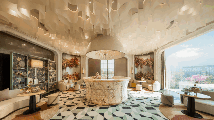 约2000㎡的双层立体泛会所也已经实景呈现,“她空间”里,艺术长廊和社交沙龙融为一体;云外书院临水而建,翻翻书、发发呆,一下午就过去了;法式下午茶空间、奈尔宝主题童梦空间、瑜伽音疗场……