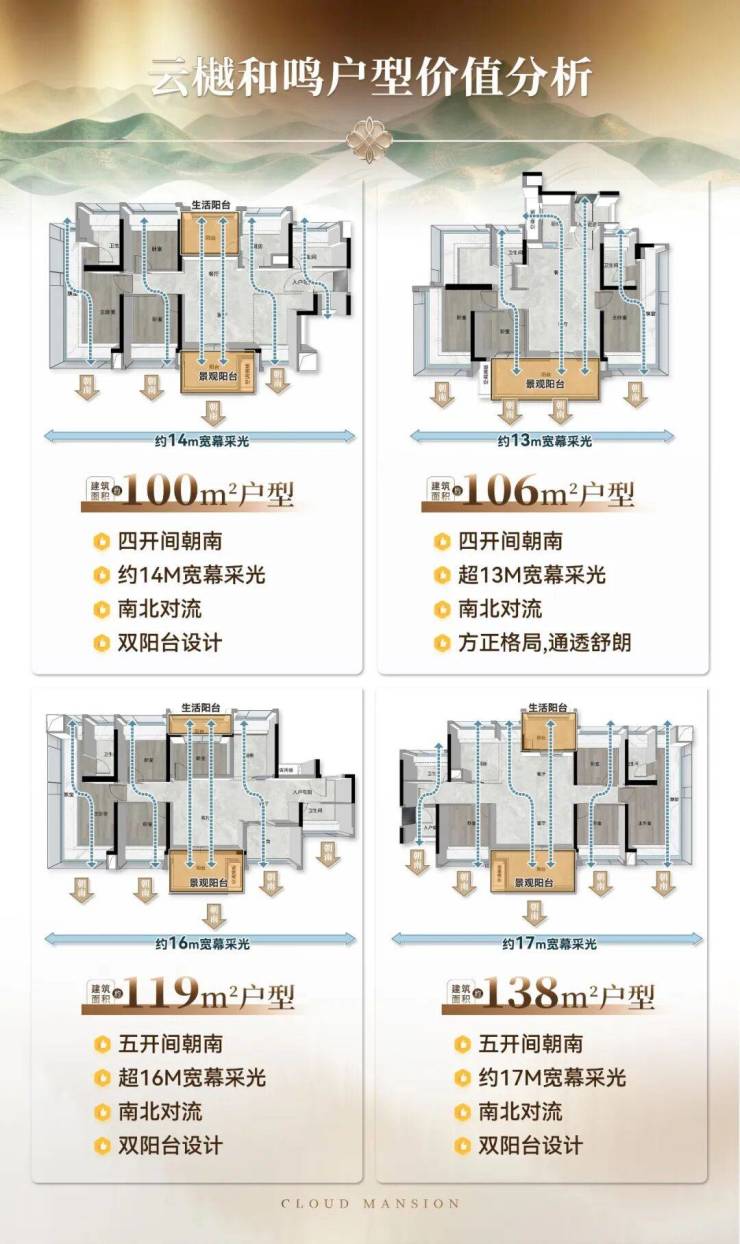 项目主力户型为建面约100-138㎡,恰好踩在改善型需求的核心区间,它不像140㎡以上那样总价过高、客群收窄,也不像90㎡以下那样偏刚需、置换周期太短。这个面积段,进可攻、退可守。