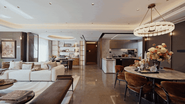 这是什么概念?市面上很多120㎡甚至130㎡的户型,都做不到这个级别的公共空间尺度。