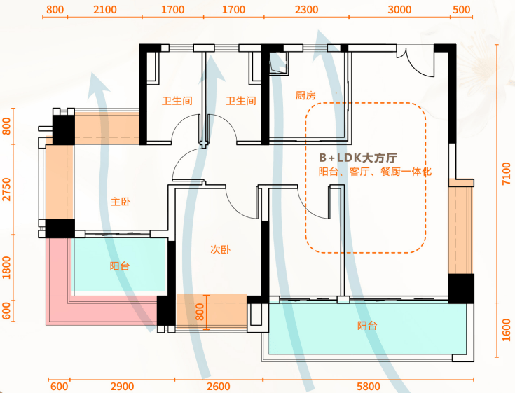 客餐厨LDK一体化设计,形成一个近40㎡的超大社交空间,无论是家庭聚会还是招待亲友,都绰绰有余。