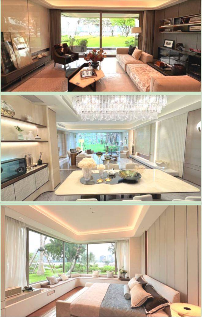 产品创新:项目主力户型为131-290㎡三至五房,采用“点阵式错位布局”,楼间距高达120米。以215㎡户型为例,层高3.3米,全景落地窗设计,搭配“双主卧+双会客厅”格局,满足家族多代共居的私密性与尊贵感。