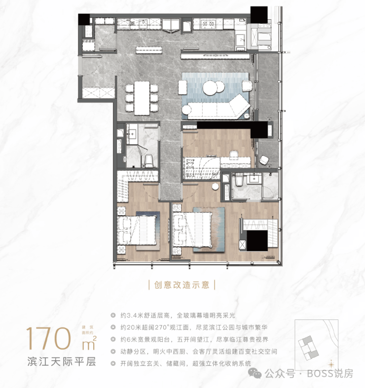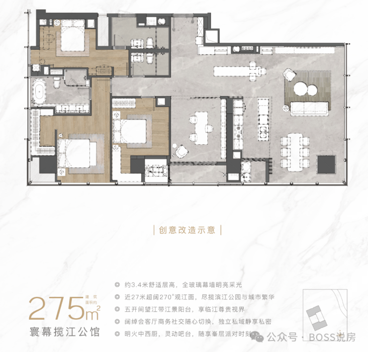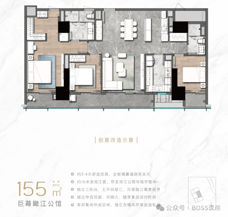 双阳台设计,超宽景观阳台,一线江景视野开阔