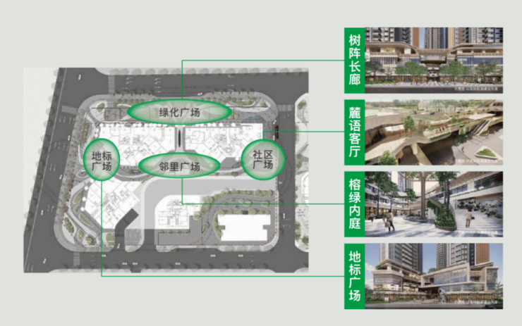 水廊花埭-花地花轴-城市公园环线步道-立体公园-空中绿化平台,五层立体生态系统,从水岸到街巷、从地面到空中,多样化归家动线,打通无风雨空中连廊,地铁归来沿屋顶花园惬意漫步归家,让每一次归家,都像是穿越花园的旅行。