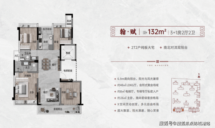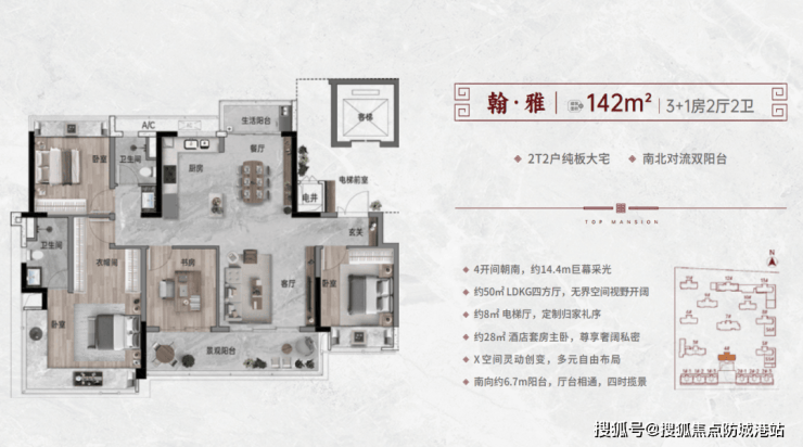 2T2户纯板大宅 | 南北对流双阳台 | 南面约6.9米全屏观景阳台