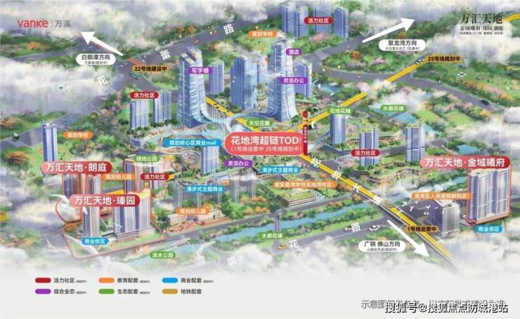 花地湾是广州少数以“整体片区更新”方式推进的核心发展区。不同于零散改造,这里由万科进行大体量连片布局,形成统一规划、统一风貌、统一产业方向的城市更新模式。城市级商业综合体、滨水公园系统、教育资源导入、公共服务叠加,以及 TOD 枢纽的打造,使其未来五年内的面貌将发生质的改变。国际团队如 KPF、Sasaki 的加入,让区域城市设计具备更具开放性、公共性与国际标准的视觉体系。瑧园作为核心住宅区的高端产品,是整个片区价值体系的封面作品,既承接板块升级带来的外部红利,也通过自身品质反哺区域形象。居住者并不需要等待漫长的建设周期,因为许多城市界面已经启动,实现“当前可享、未来更强”的双周期居住体验。
