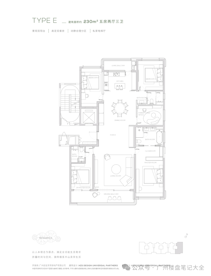 【230㎡户型】观景双阳台-高定双套间-私家电梯厅-双洄游动线