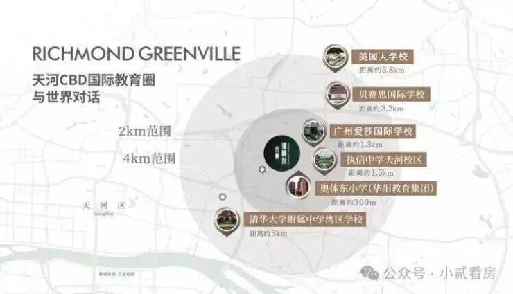 中学:执信中学天河校区、清华大学附属中学湾区学校、华师附外美式高中、广州奥林匹克中学、华南师范大学附属外国语学校