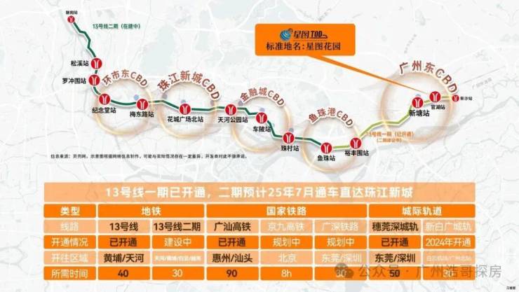 品秀星图所在的官湖站相比华润公园上城所在的沙村站,距市区远3个站(约多10-15分钟车程)。但官湖站作为始发站,通勤高峰期通常能保证座位,若稍提早出行,可显著提升乘坐舒适度。13号线二期首通段(鱼珠至天河公园段)已于2025年10月开通,未来可直达天河核心区(如珠江新城、金融城),无需换乘,大幅缩短通勤时间并分流5号线客流压力。