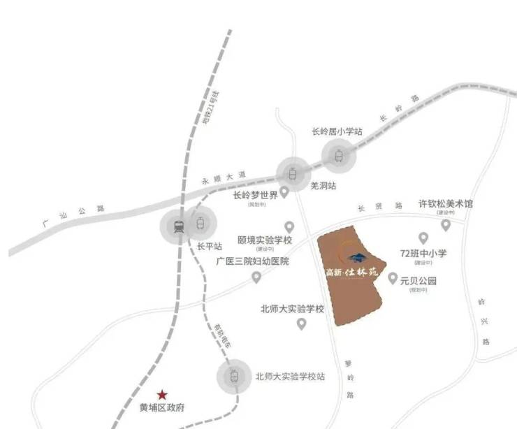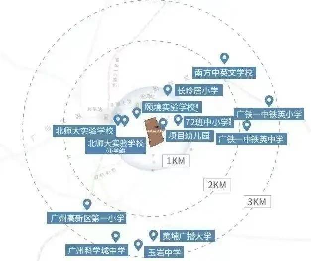 距离最近的俩小学一是长岭居小学(南校区),一是北师大广州实验学校(小学部)——根据《黄埔区2023年义务教育学校招生工作实施细则》,这俩学校均对口长岭社区符合政策的适龄儿童,是以不排除高新仕林苑也会纳入招生范围。