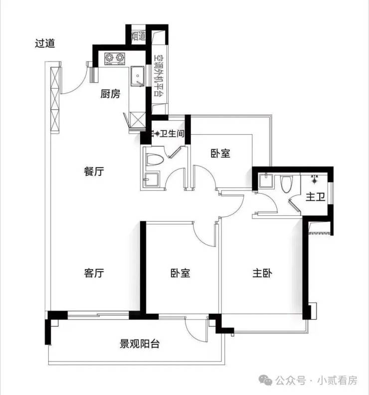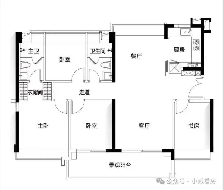 主套有做衣帽间设计,加分,卫生间也是干湿分离的设计,门口的书房也能用作老人房用途。