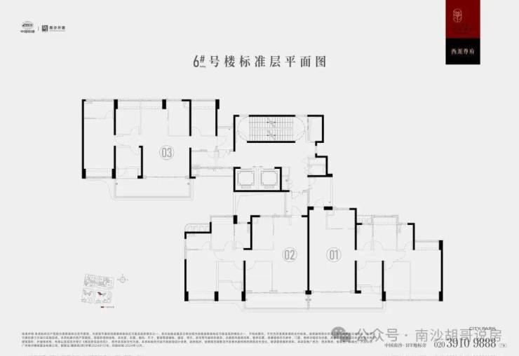 6栋平面图和户型图,2梯3户,01和03是139㎡,02是130㎡