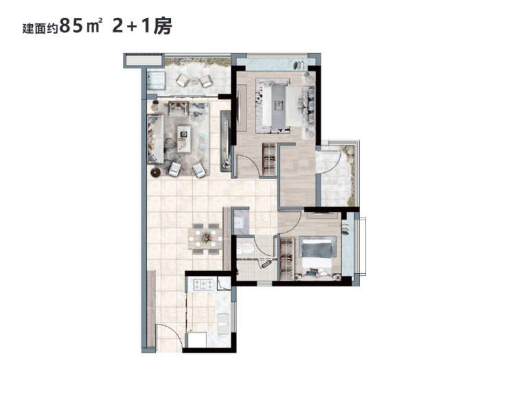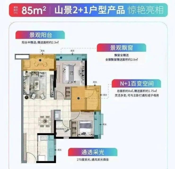 其中,建面约85㎡的2+1房户型在中央城中关注度最高。
