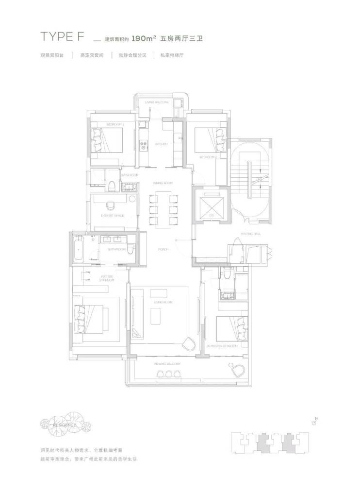 观景双阳台-高定双套间-私家电梯厅-双洄游动线