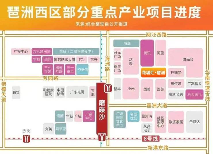 项目所在的琶洲西区,定位为数字融合创新产业聚集区,是琶洲企业总部最为聚集、发展最为成熟的片区,超50家数字经济头部企业总部云集,总共有43个重点项目落户,已有25座重点项目落成。