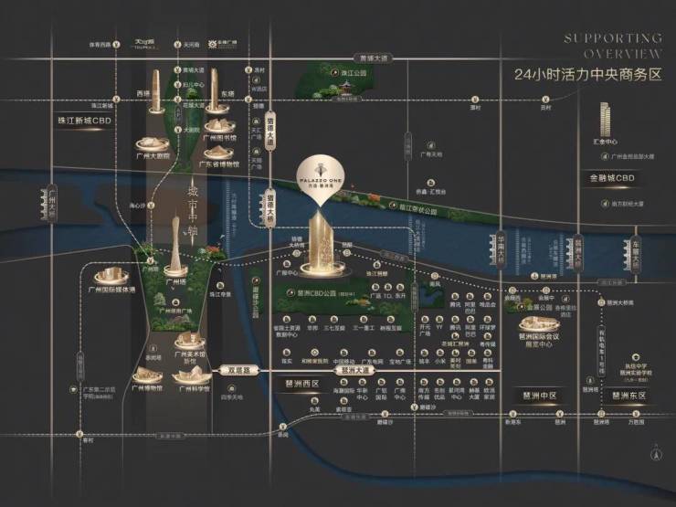项目西面与广州塔并肩而立,距离世界级地标商圈广州塔广场仅约1.5公里,享受同步国际的顶奢资源。北望珠江新城CBD璀璨繁华,与亿级江景豪宅侨鑫汇悦台、广粤天地共享同一江境。楼下则是正在建设中的琶洲π艺术馆,将打造成琶洲一流商务文体核心地,营造艺术与生活密不可分的美学体验。