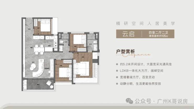 建面约105㎡四房两厅两卫;