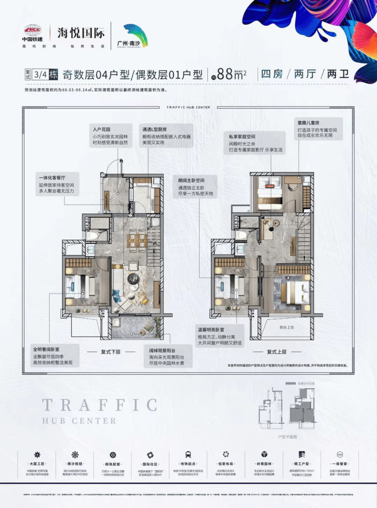 南沙唯一在售咬合式小户复式81-101㎡,高使用率:约85~104%,买一层得两层