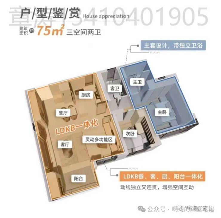 ② 中海江泰里,将府系产品的优势继续应用于里系产品,不仅保留了 LDK、精致收纳、厨房岛台,更进一步升级 LDKB,将原有的客厅、餐厅、厨房三位一体,升级为“客厅、餐厅、厨房、可变空间”四位一体,实现家庭互娱大方厅。