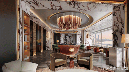 室内以咖色奢石为主色,佐以璀璨金的点缀,如同夜空中的繁星。