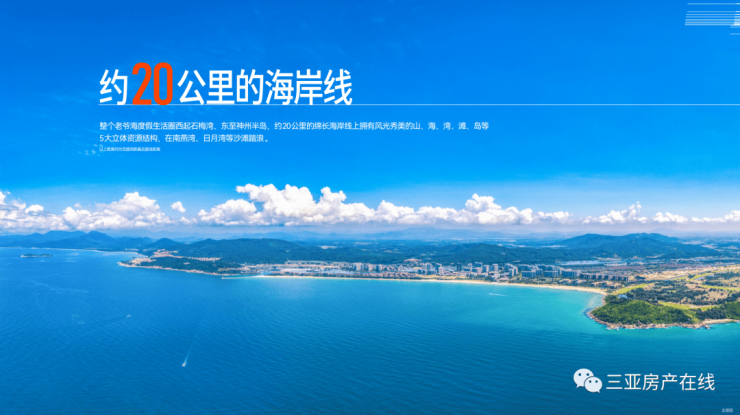 老爷海度假生活圈西起石梅湾、东至神州半岛,约20公里的绵长海岸线上,拥有风光秀美的山、海、湾、滩、岛等5大立体资源结构,去南燕湾、日月湾等沙滩踏浪;在大洲岛、洲仔岛、分界洲岛等岛屿探秘;红树林、青皮林、半岛湖公园、神州高尔夫、东山岭风景区等绿荫叠翠;游艇、冲浪纵情海上。