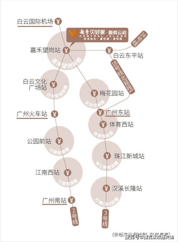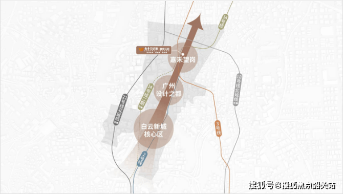 项目位于白云新城嘉禾望岗商务核心区,依托嘉禾望岗地铁站,形成了以TOD(Transit-Oriented Development)为导向的城市综合开发示范区。该区域通过圈层式布局城市功能,将枢纽与城市紧密结合,形成片区中心,实现交通便捷性和生活便利性的完美结合。