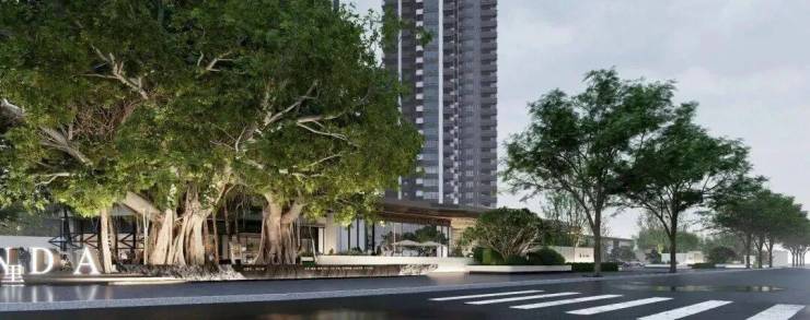 大门处保留百年榕树,打造休闲空间“榕悦广场”,休闲社交超自在!