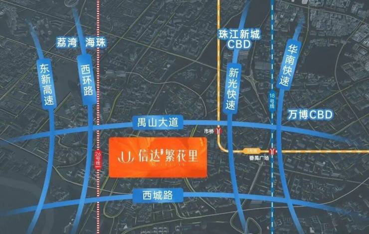 临近两大主干道——禺山大道、西环路,接驳东新高速可达荔湾/海珠,接驳新光快速可达万博CBD、珠江新城CBD,通达全城!